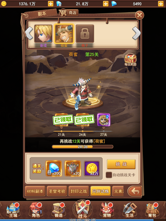 1第一个是百人道场,一定要在每天都打到最高 而且就算卡等级打不了了也要每天去手动领取每日奖励,不手动领就不给! 2第二个是每个地图都有几个挑战任务,每个任务几百经验,组队打一般都很好打 3第三个是家族兽每日喂养。公会每日为勇者提供了三个任务,每位勇者接收的任务委托可能不一样哦勇者领取完对应的任务,就...