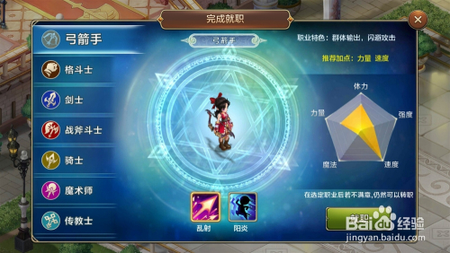 4弓箭手 弓箭手主要的武器就是弓咯,通过远程的射击能直接攻击到地方的后排呢,这个弓箭手主要是远程攻击有优势,但是近身攻击相对就比较吃亏了呢,所以这个职业适合站在后方作战5剑士 剑士的攻击力是比较平均的,没有太。